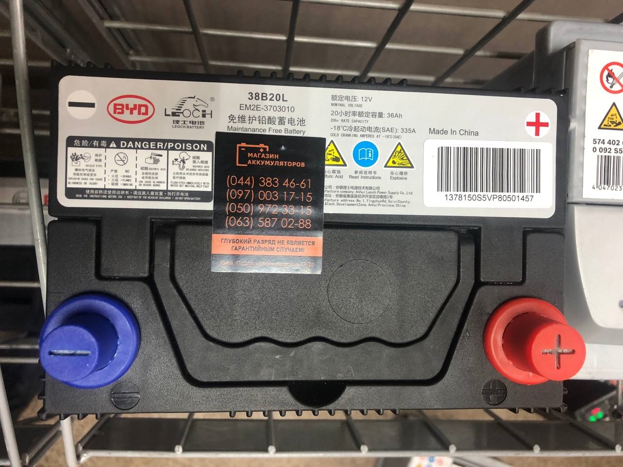 Акумулятор BYD LEOCH 38B20L 12V 36Ah CCA 335A SC2EM-3703010 / EM2E-3703010