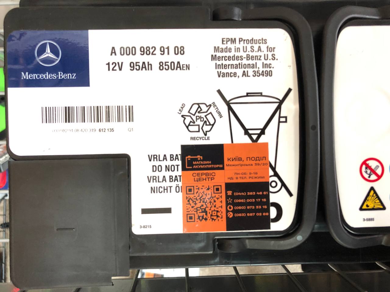 Акумулятор Mercedes-Benz A 000 982 91 08 12v 95Ah 850A. Гарантія 18 місяців.