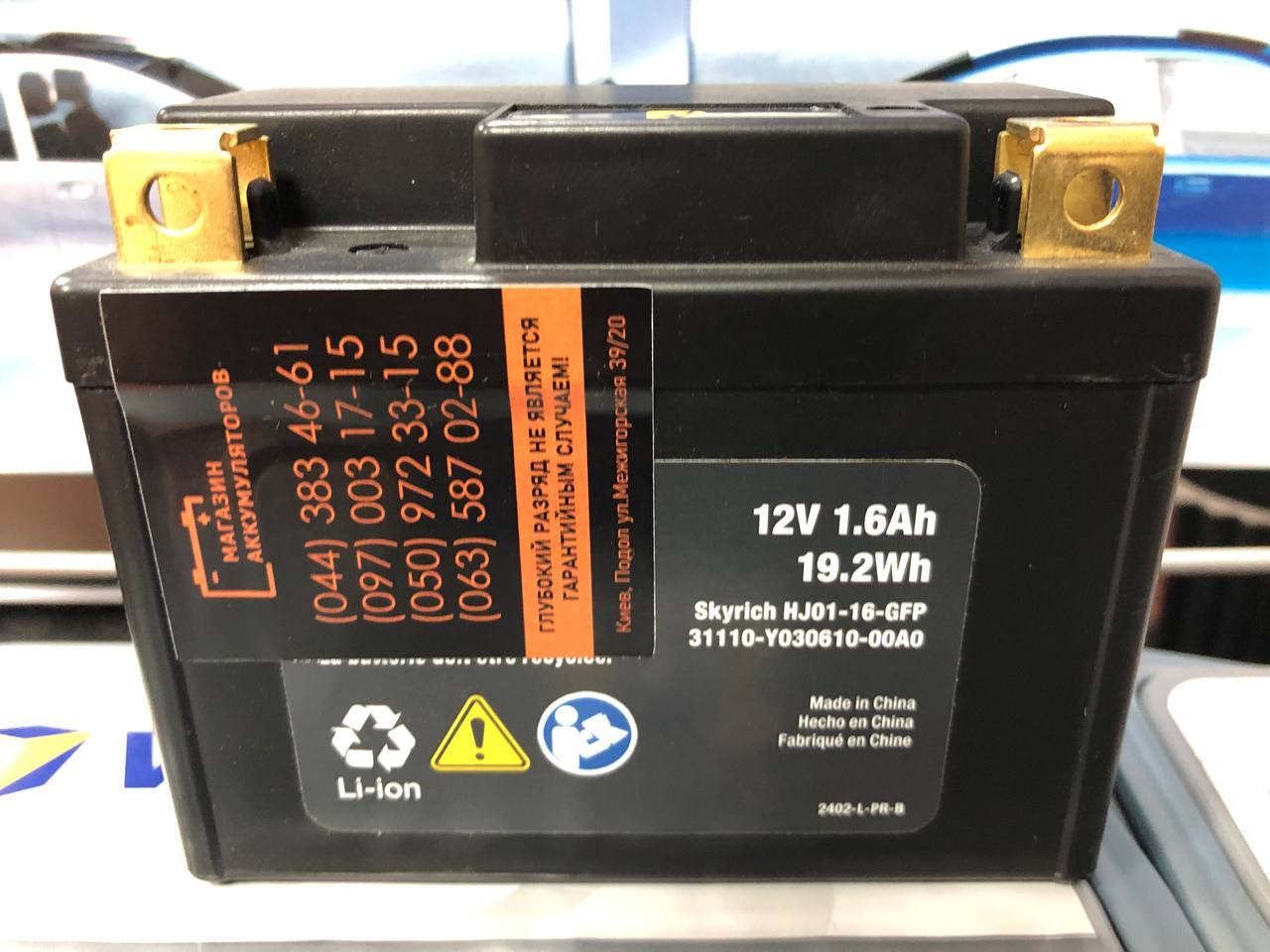 Акумулятор Skyrich Li-ion HJ01-16-GFP 31110-Y030610-00A0 12V 1.6Ah 19.2Wh. Гарантія 12 місяців.