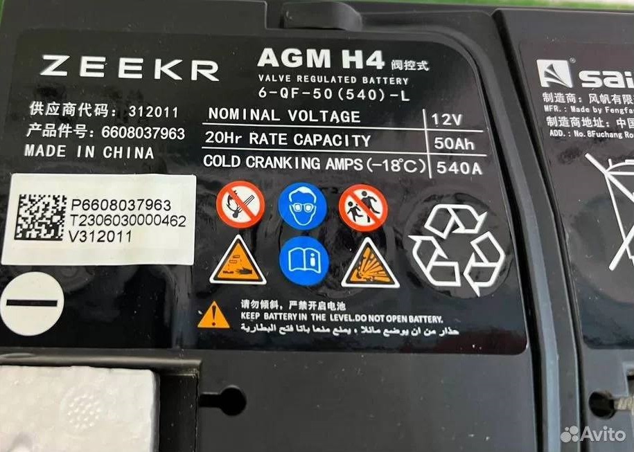 Акумулятор ZEEKR AGM H4 6-QF-50 12V 50Ah 540A 6608037963.